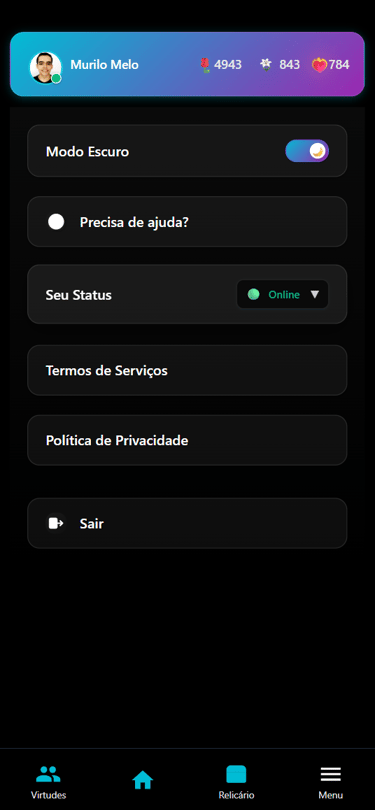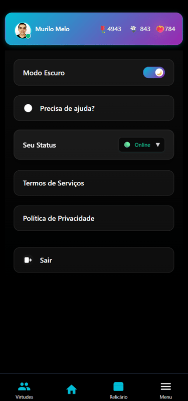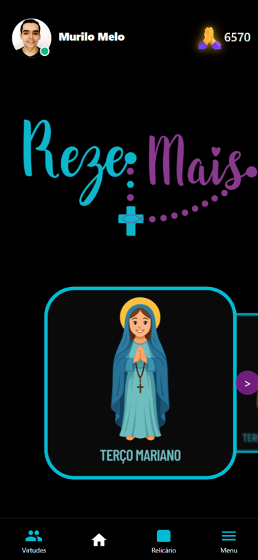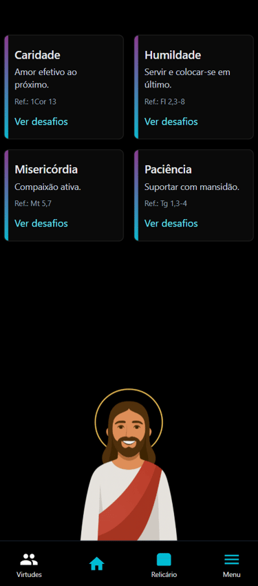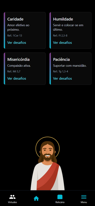 O sistema de gamificação incentiva a constância na oração, transformando-a em um hábito diário através do fortalecimentos das virtudes.